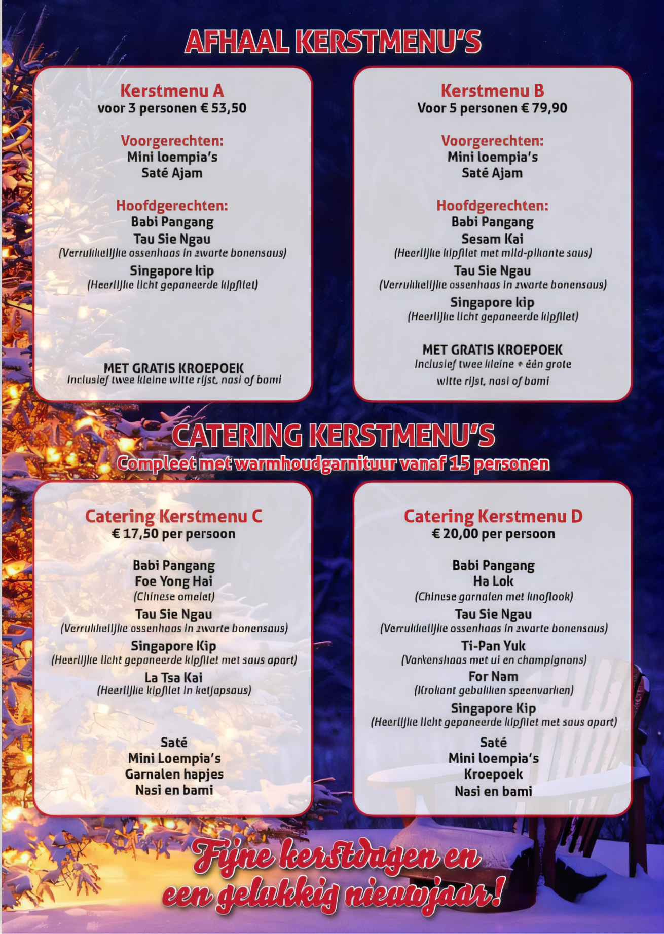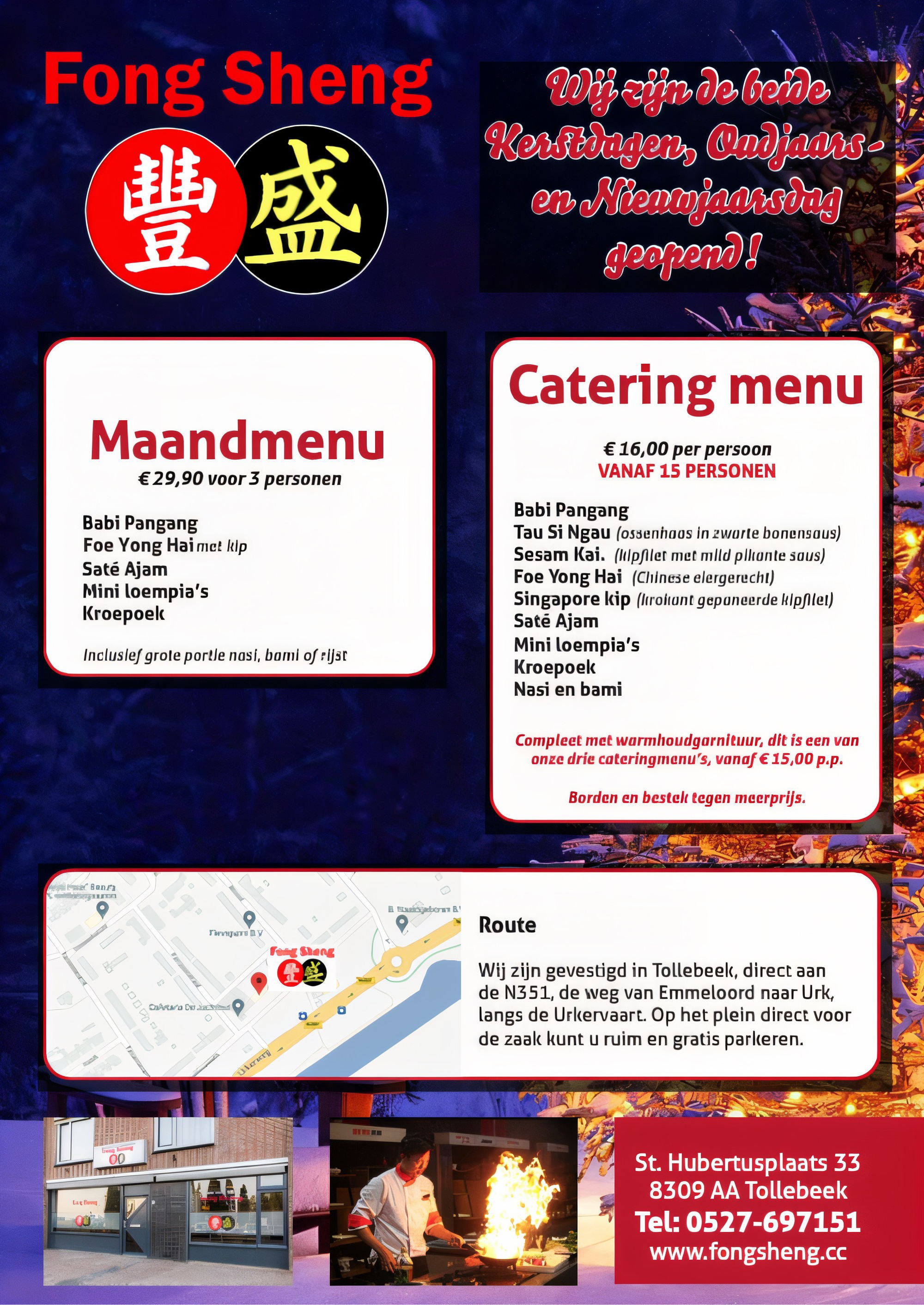 Sinds jaren is ons Chinees afhaalcentrum gevestigd in Emmeloord de Zuidert een begrip in de polder. In september 2020 zijn wij verhuisd naar Tollebeek waar wij onze afhaal-en catering activiteiten hebben uitbreid met een lang gekoesterde wens, namelijk een Chinees Indisch specialiteiten restaurant. Wij heten onze bestaande en nieuwe klanten van harte welkom in ons nieuwe bedrijf! Lisa en Leon.