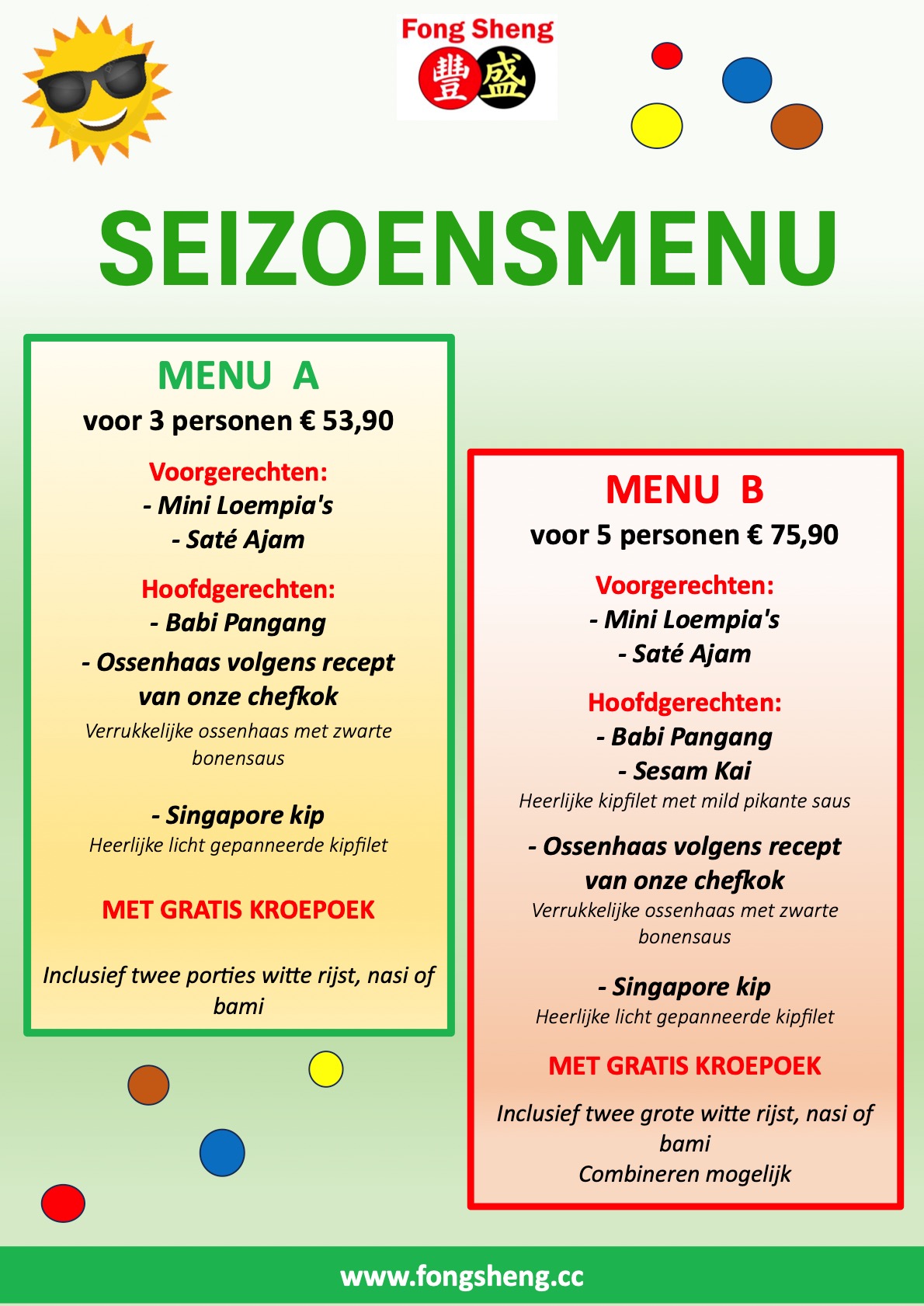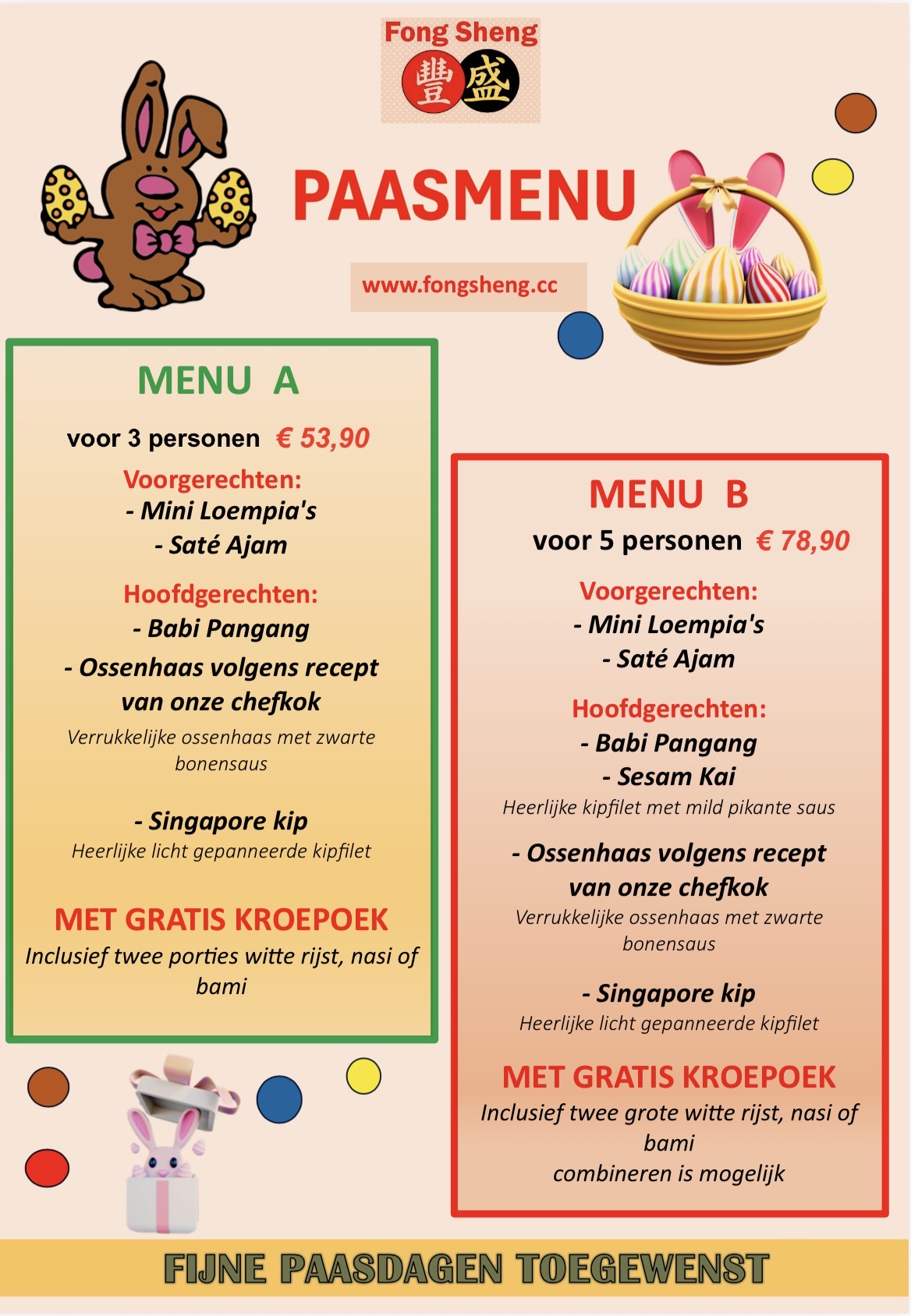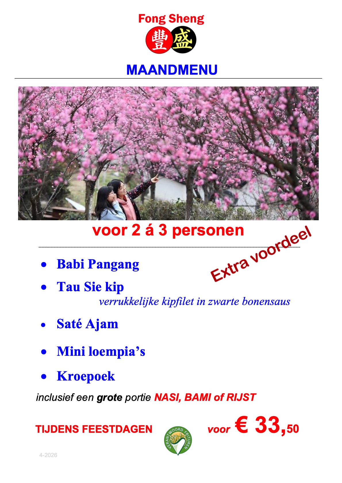 voor 2 personen *FANG = NASI *MING = BAMI